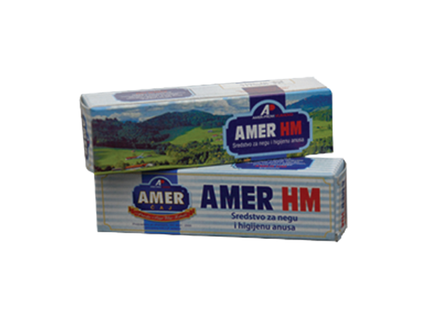 Amer HM krema za hemoroide se koristi za negu i higijenu anusa. Ostvaruje povoljno dejstvo kod prisustva spoljašnjih hemoroida, blagotvorno deluje i ublažava osećaj svraba, pečenja i bola na anusu. Preporučuje se u kombinaciji sa Amer čajem.